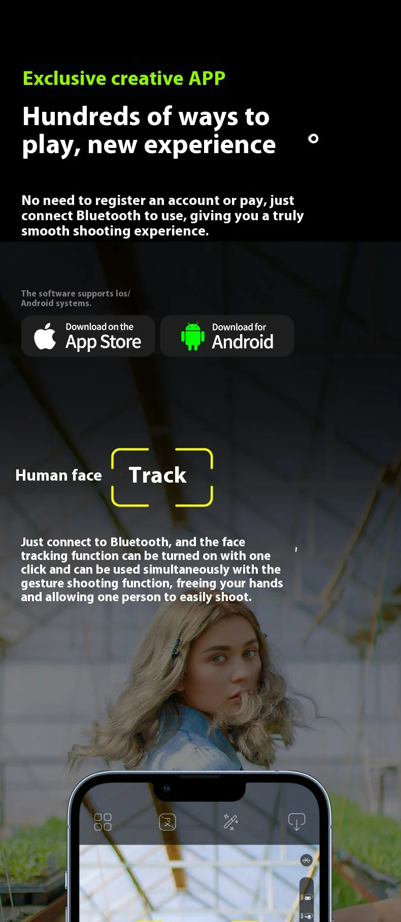 Featuring an adjustable tripod head for flexible positioning, this stabilizer adapts effortlessly to your creative angles. Its lightweight and portable design ensures easy handling and all-day comfort, while universal smartphone compatibility lets you shoot high-quality, seamless content anywhere your creativity takes you.